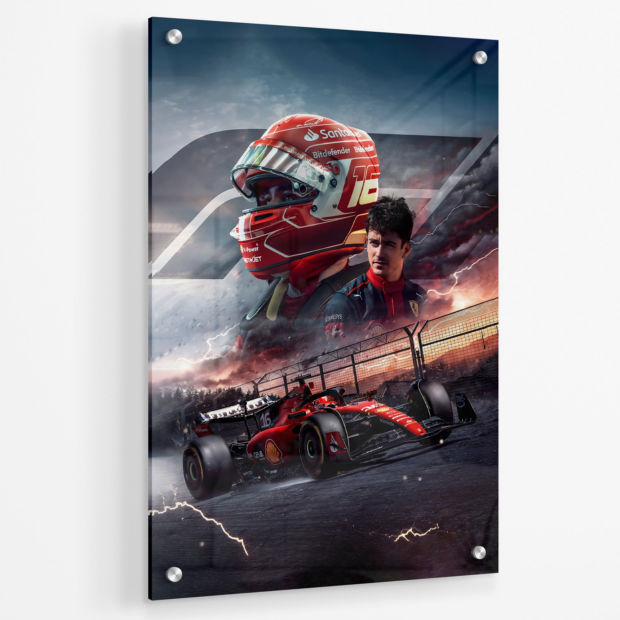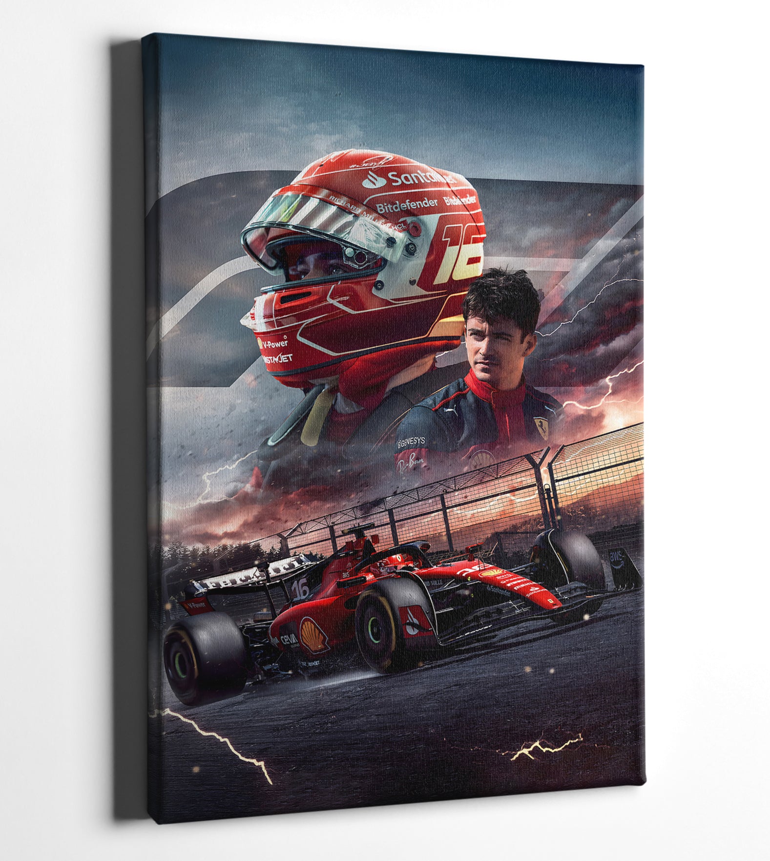 De poster toont een indrukwekkende afbeelding van een F1 coureur die met hoge snelheid over het circuit raast, omringd door een aura van dynamiek en energie. Met zijn gedetailleerde weergave van de auto, geeft deze poster je het gevoel alsof je midden in de actie zit.