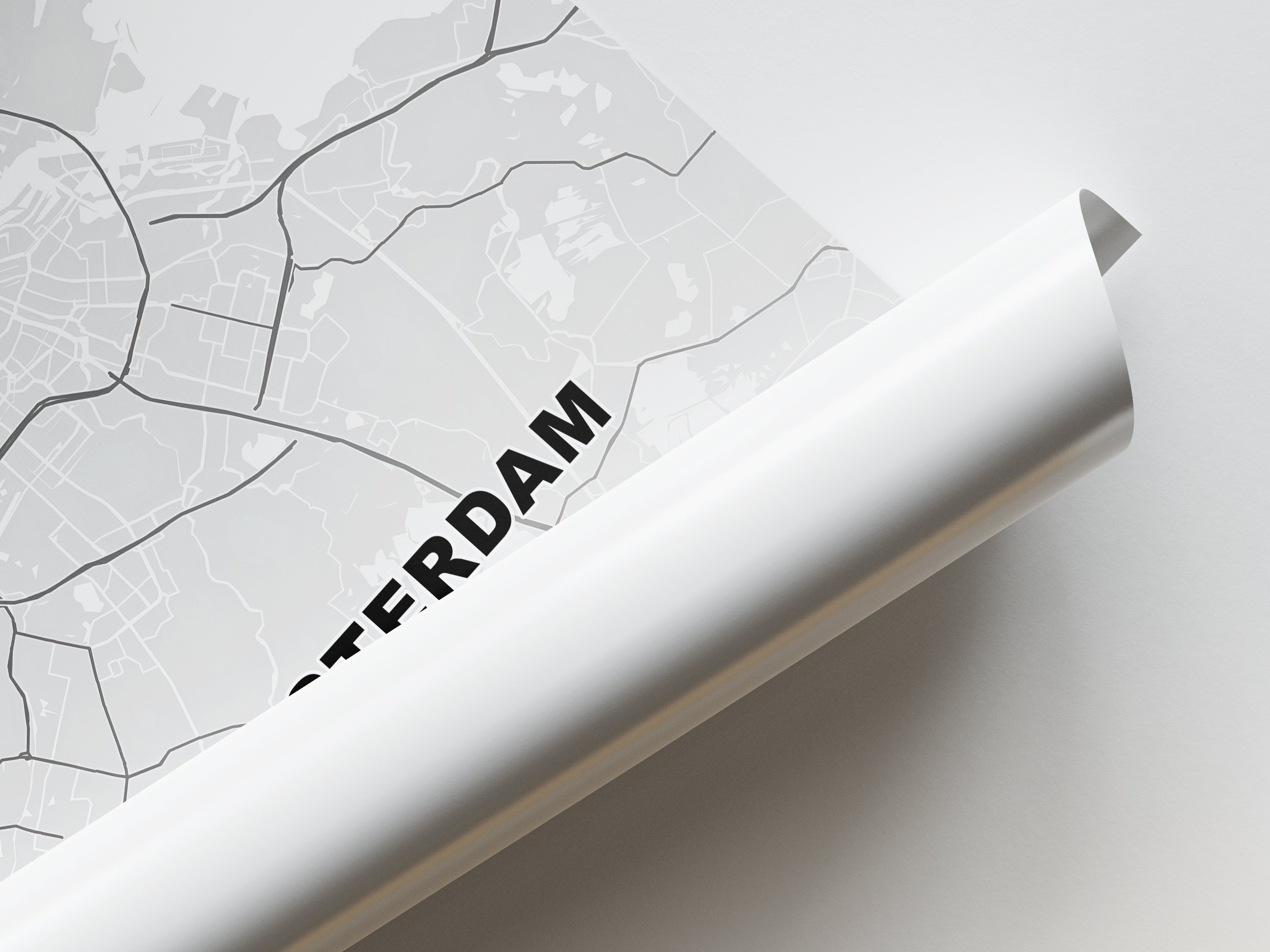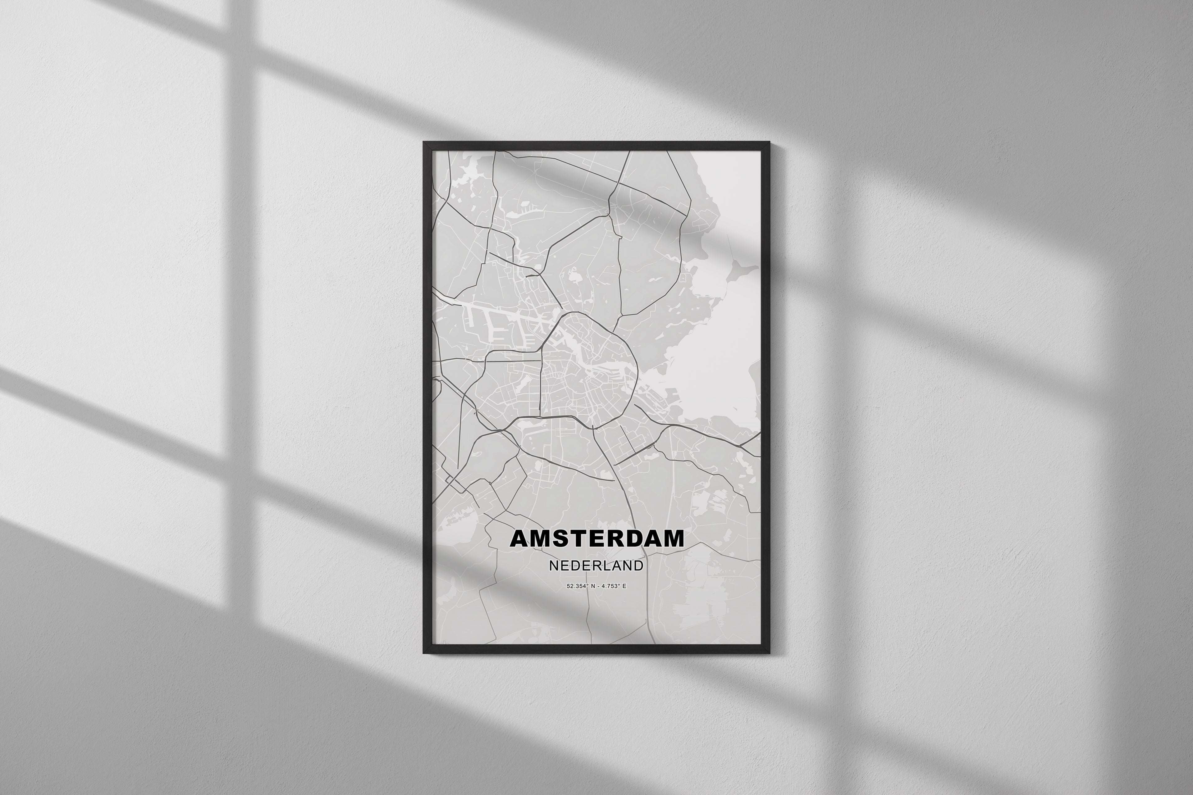 Deze poster toont een gedetailleerde kaart van de stad Amsterdam, met alle belangrijke straten, grachten en bezienswaardigheden. De kaart is gedrukt op hoogwaardig papier en heeft een klassieke uitstraling die een vleugje nostalgie toevoegt aan elk interieur.
