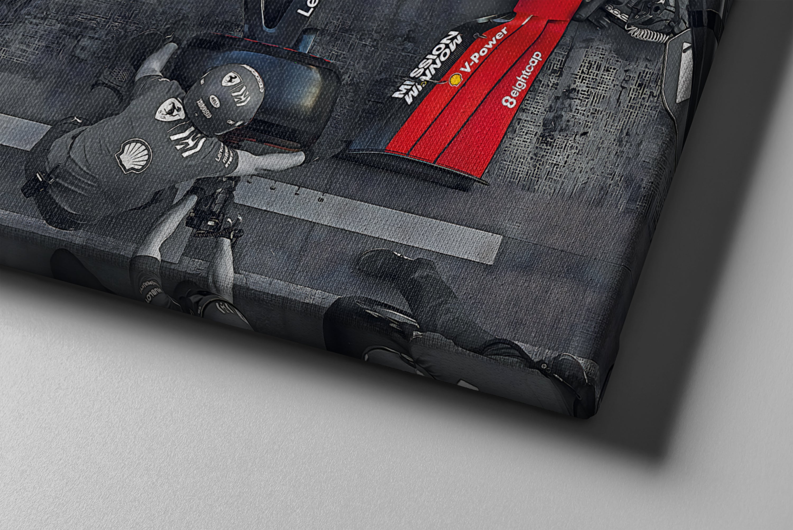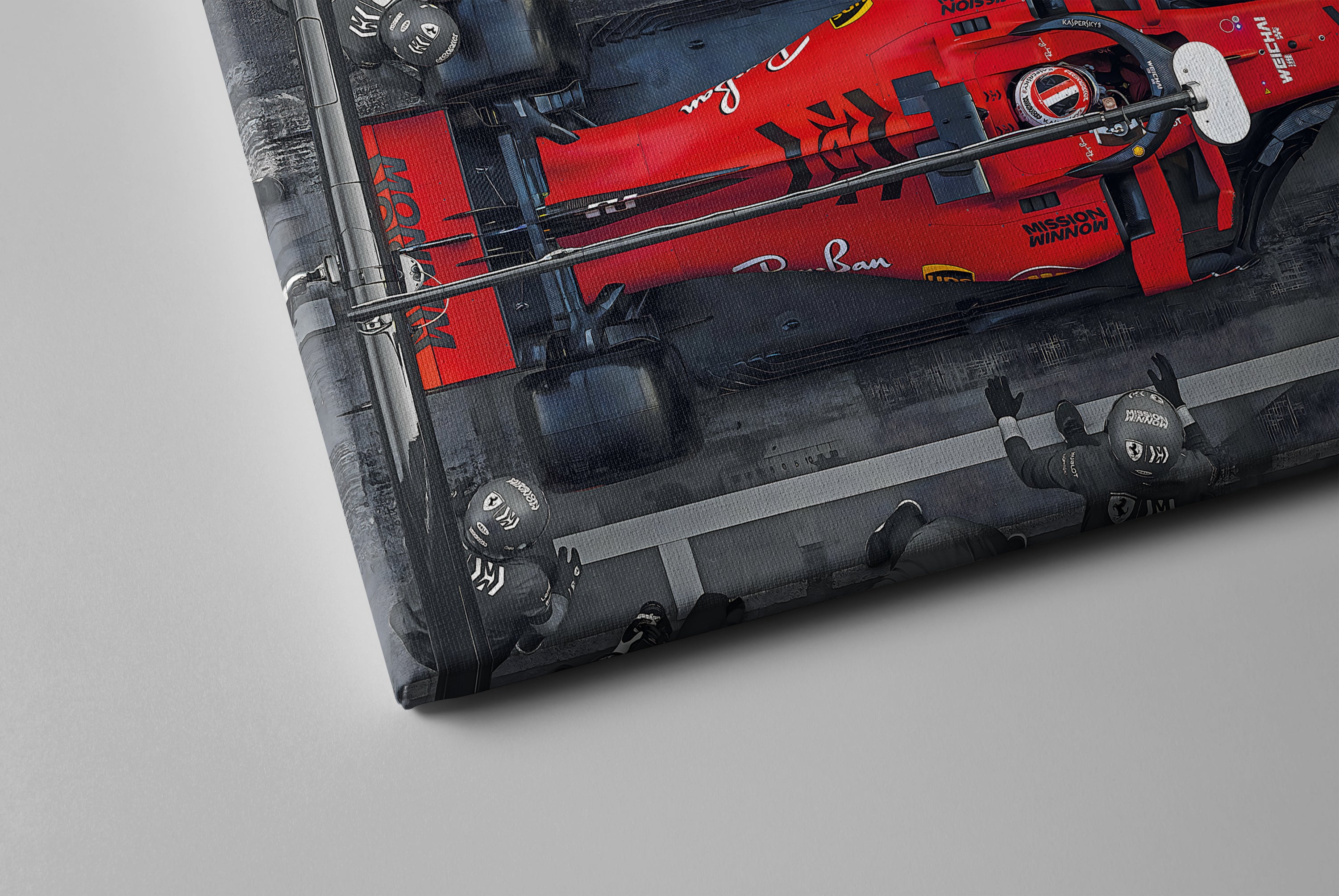 De poster toont een indrukwekkende afbeelding van een F1 coureur die met hoge snelheid over het circuit raast, omringd door een aura van dynamiek en energie. Met zijn gedetailleerde weergave van de auto, geeft deze poster je het gevoel alsof je midden in de actie zit.