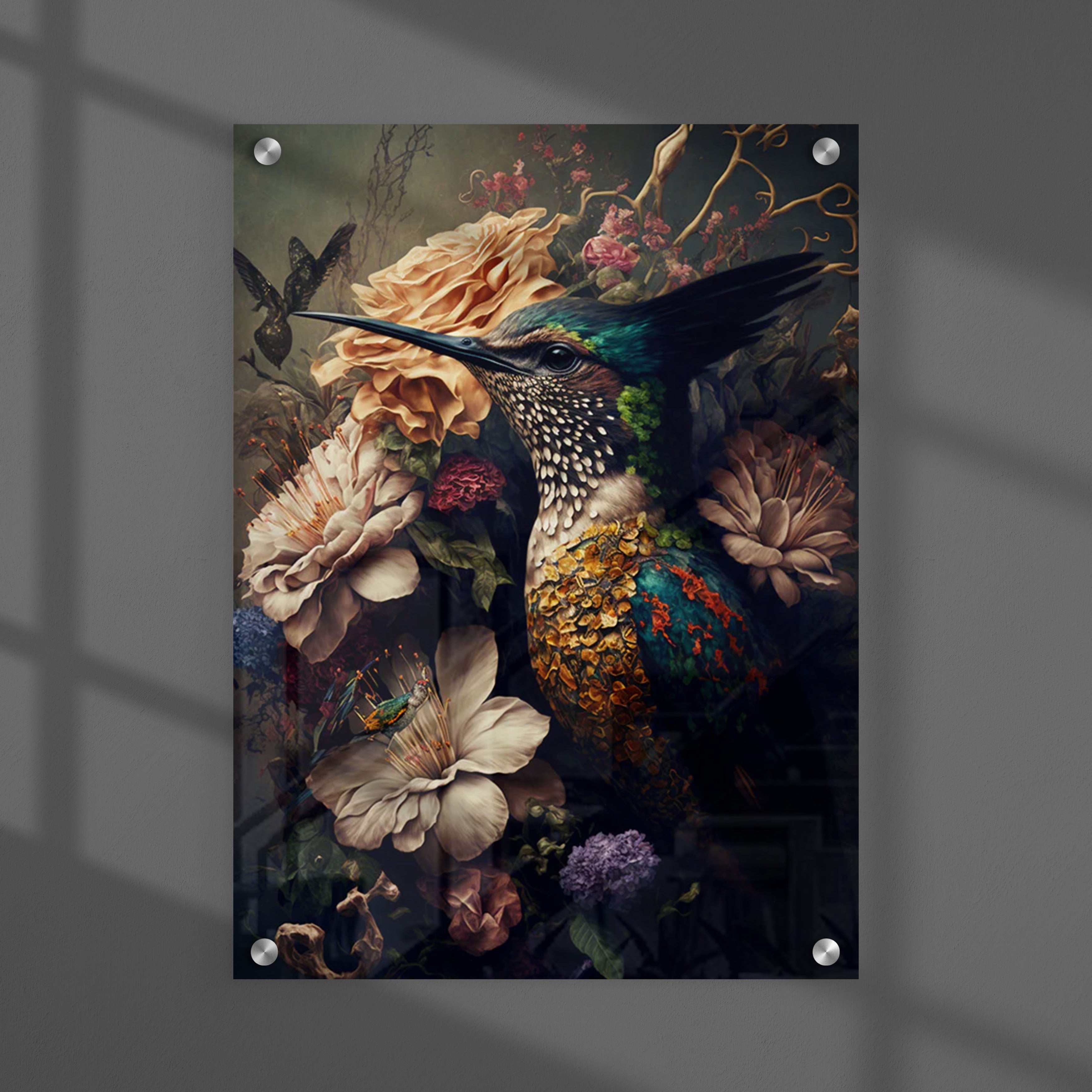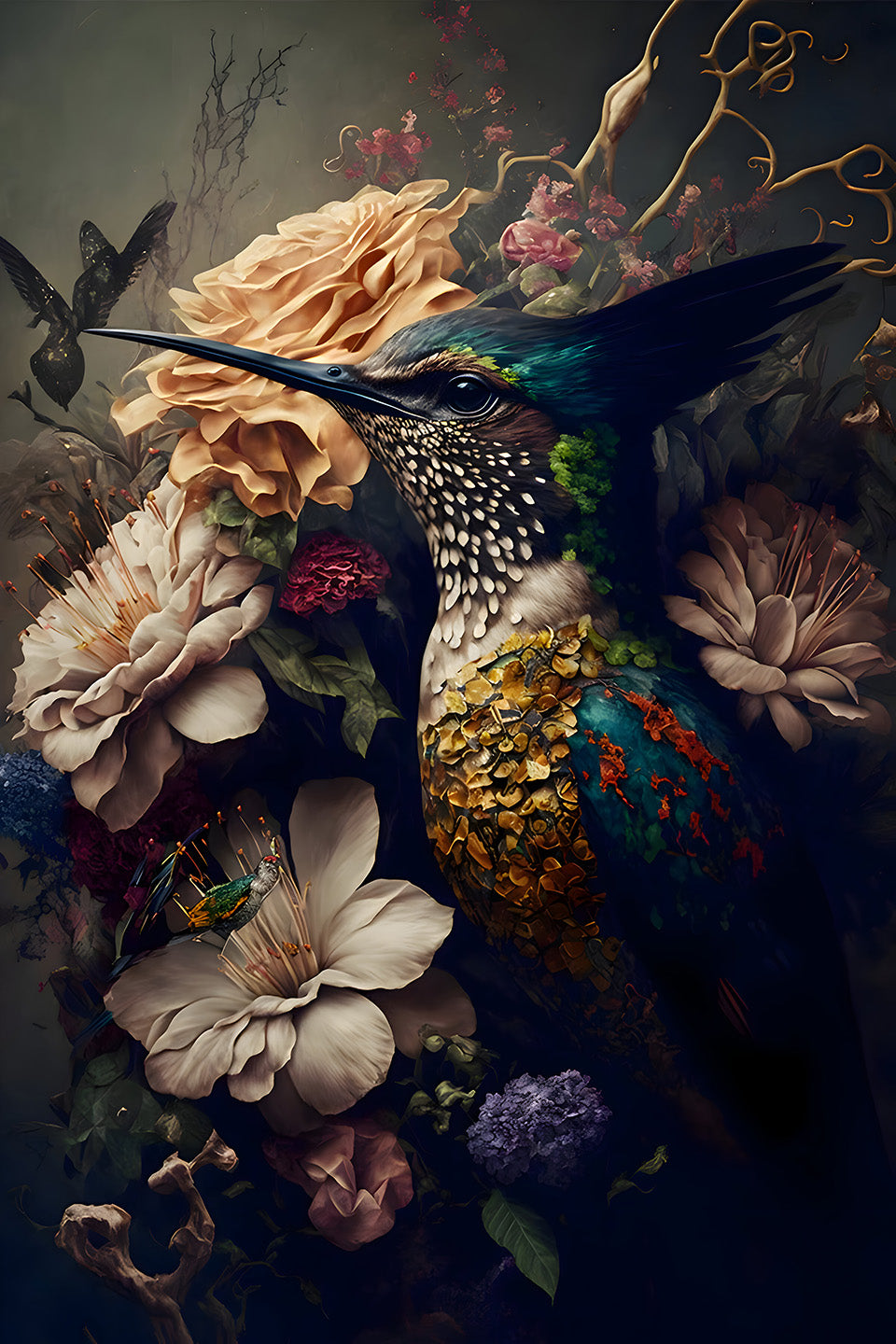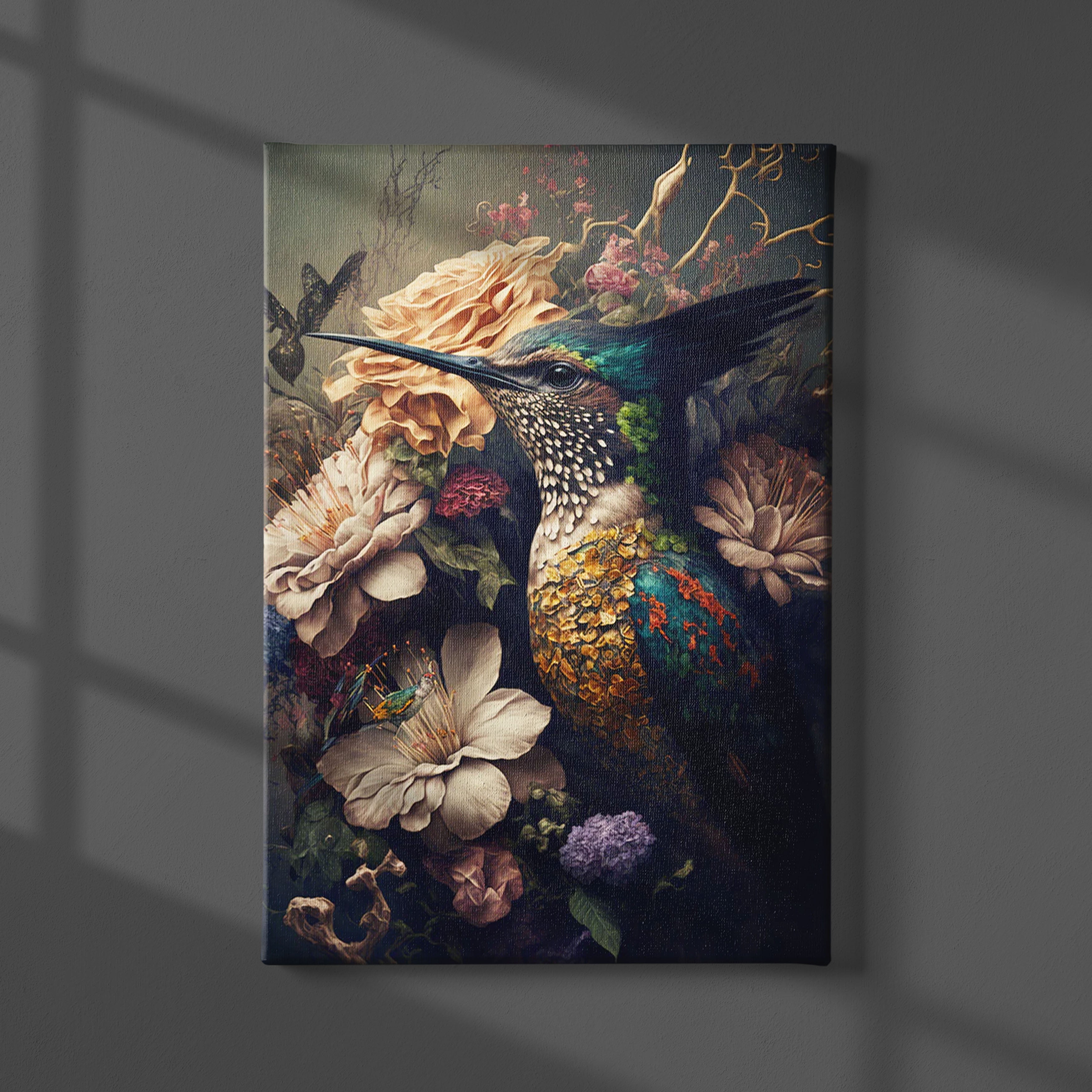 Kolibrie met Kleurrijke Bloemen - Een Kunstwerk vol Leven