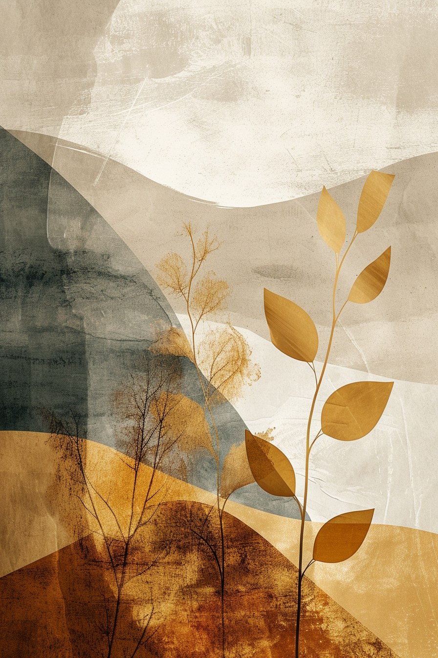 Breng rust en verfijning in je ruimte met Whispers of Nature, een minimalistisch kunstwerk dat de essentie van het landschap vangt in zachte lagen en organische vormen. Gelaagde heuvels in aardetinten ontmoeten delicate, gestileerde planten en bomen — een visuele meditatie die balans en sereniteit uitstraalt.